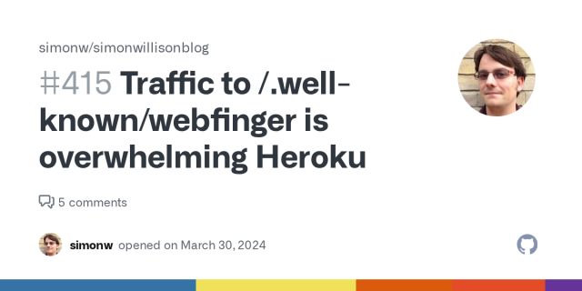 Traffic to /.well-known/webfinger is overwhelming Heroku ยท Issue #415 ยท simonw/simonwillisonblog