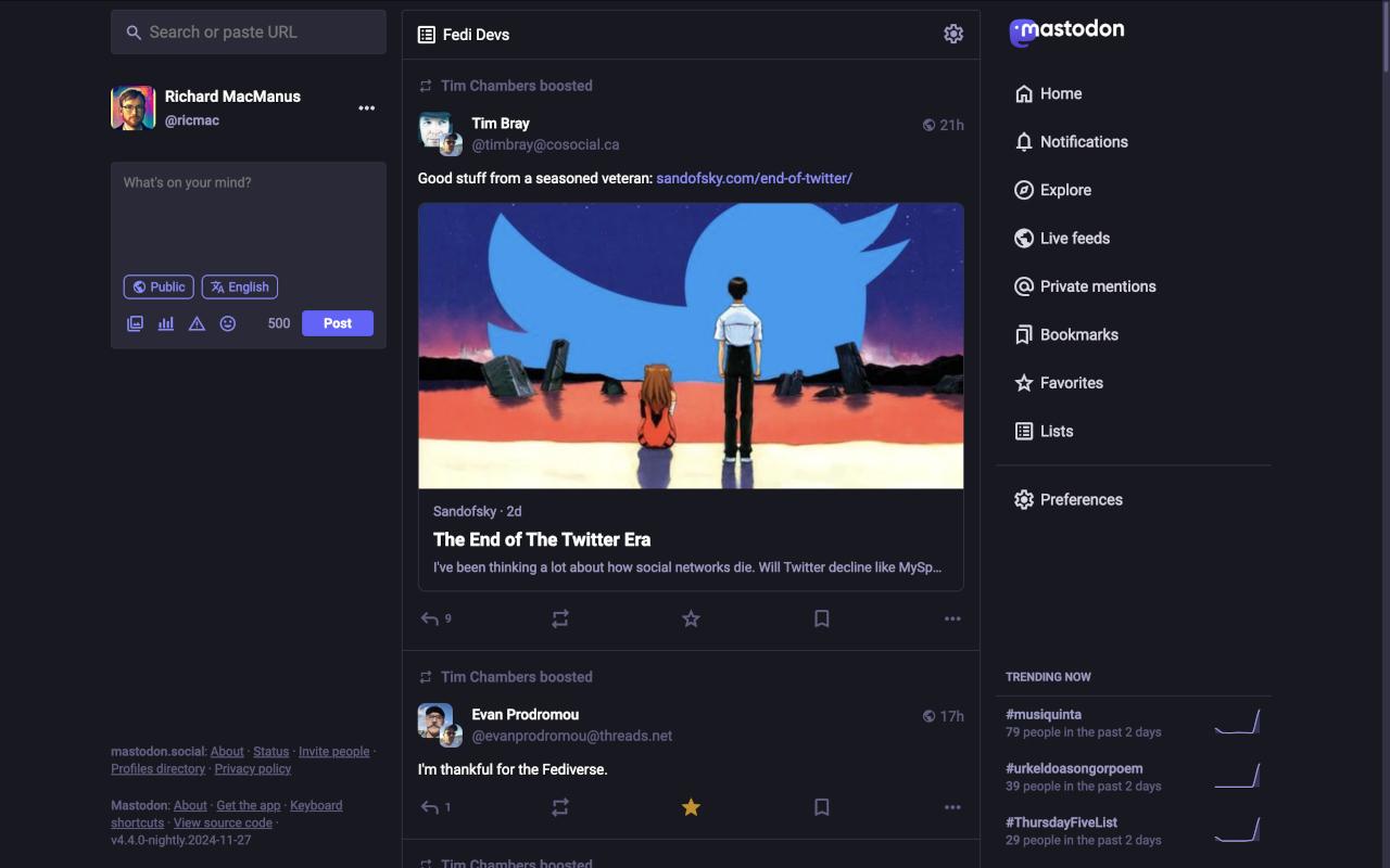 However, I do end on a note of optimism: the decentralized web as represented by the fediverse, Mastodon and potentially Bluesky. "It's a new world for those who have chosen to leave the Enshittocene behind them. Won't you join us?"
