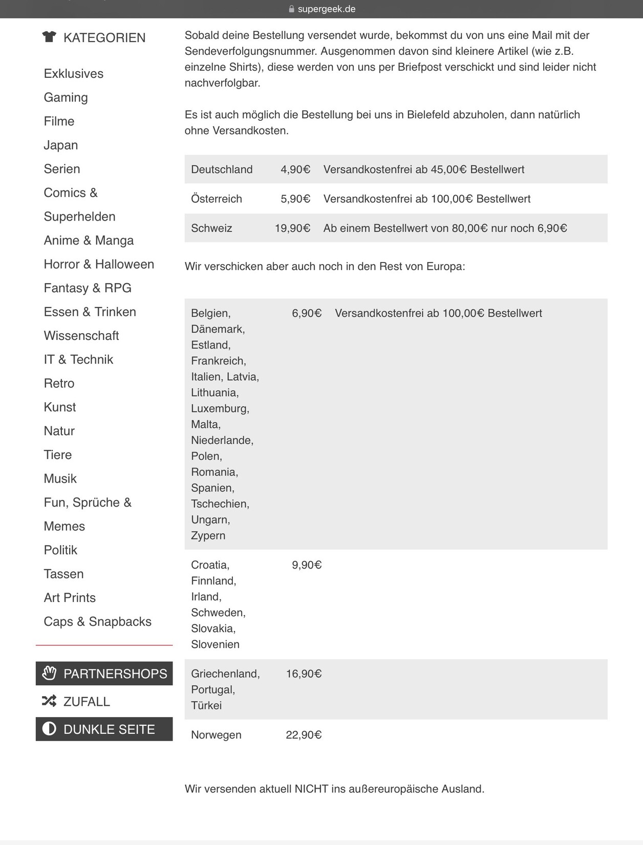 Attached is a screenshot with an overview of the delivery areas with shipping costs.