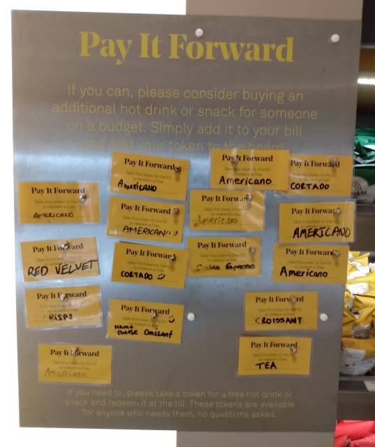 in reply to Sheril Kirshenbaum • • •Shout out to Humble House in Golden, CO that does the same thing. If you browse the slips there you'll see people "paying it forward" for a wide variety of reasons: people who are hungry, people who are struggling with cancer, runaways who are alone, people who are lonely.