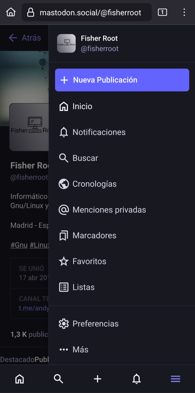 Que buen retoque se le ha dado a la interface web móvil, en la última versión de Mastodon, ahora que la barra de secciones de esta red social se hace desplegable y no fija con iconos (como estaba antes), dejando toda la pantalla pa…
