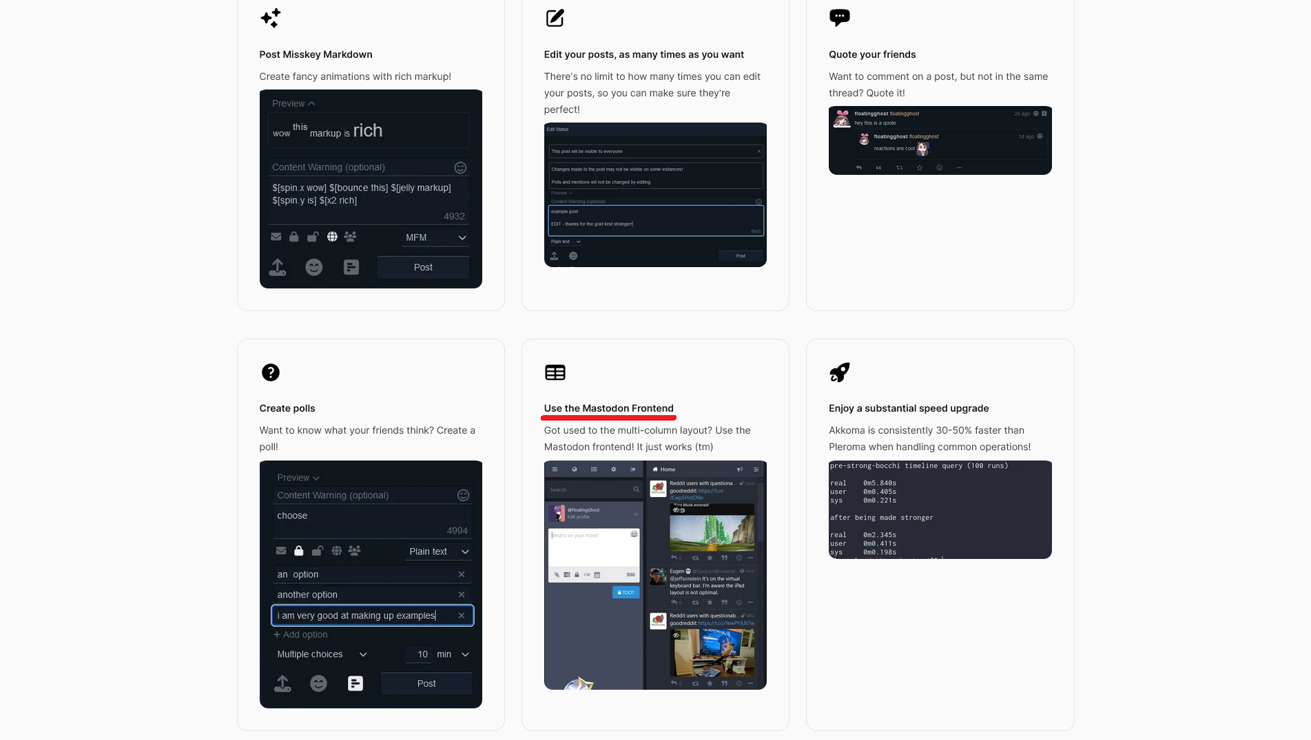 in reply to Eugen Rochko • • •@Gargron @dimillian @gruber Do you know that Akkoma is showcasing use of Mastodon's front end as a feature?