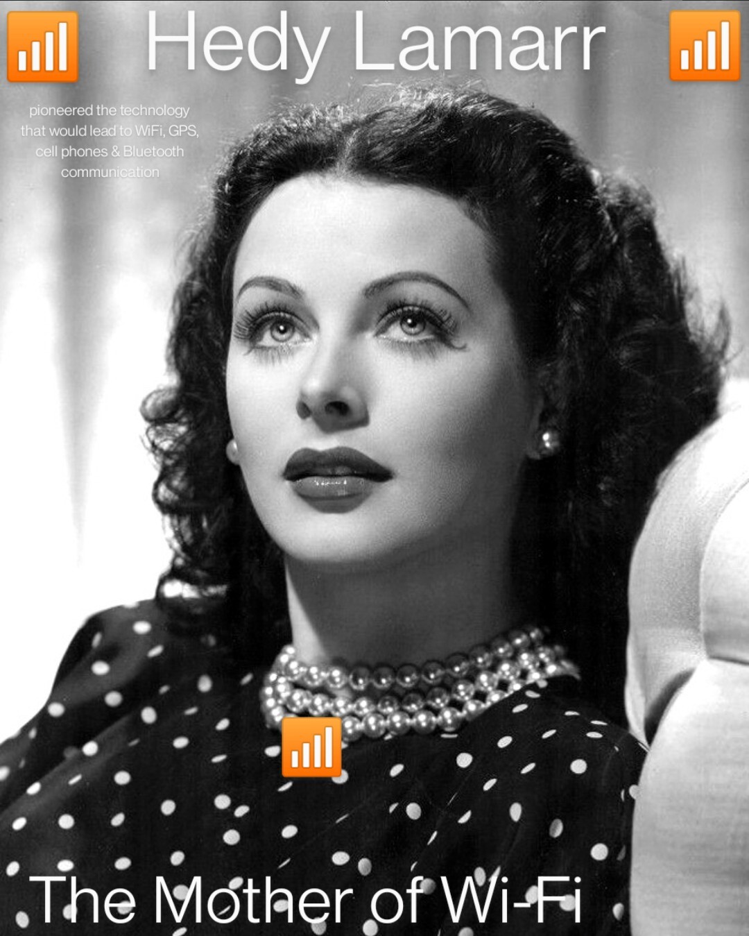 Born in 1914, Hedy Lamarr was a famous American actress who pioneered the technology that would lead to WiFi, GPS, cell phones & Bluetooth communication.