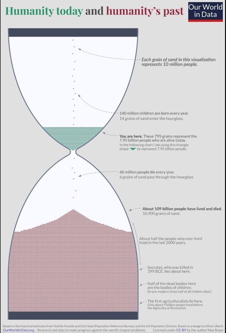This week, the world’s human #population is expected to reach 8B. About 109B people have lived and died. Each grain of sand represents 10M.