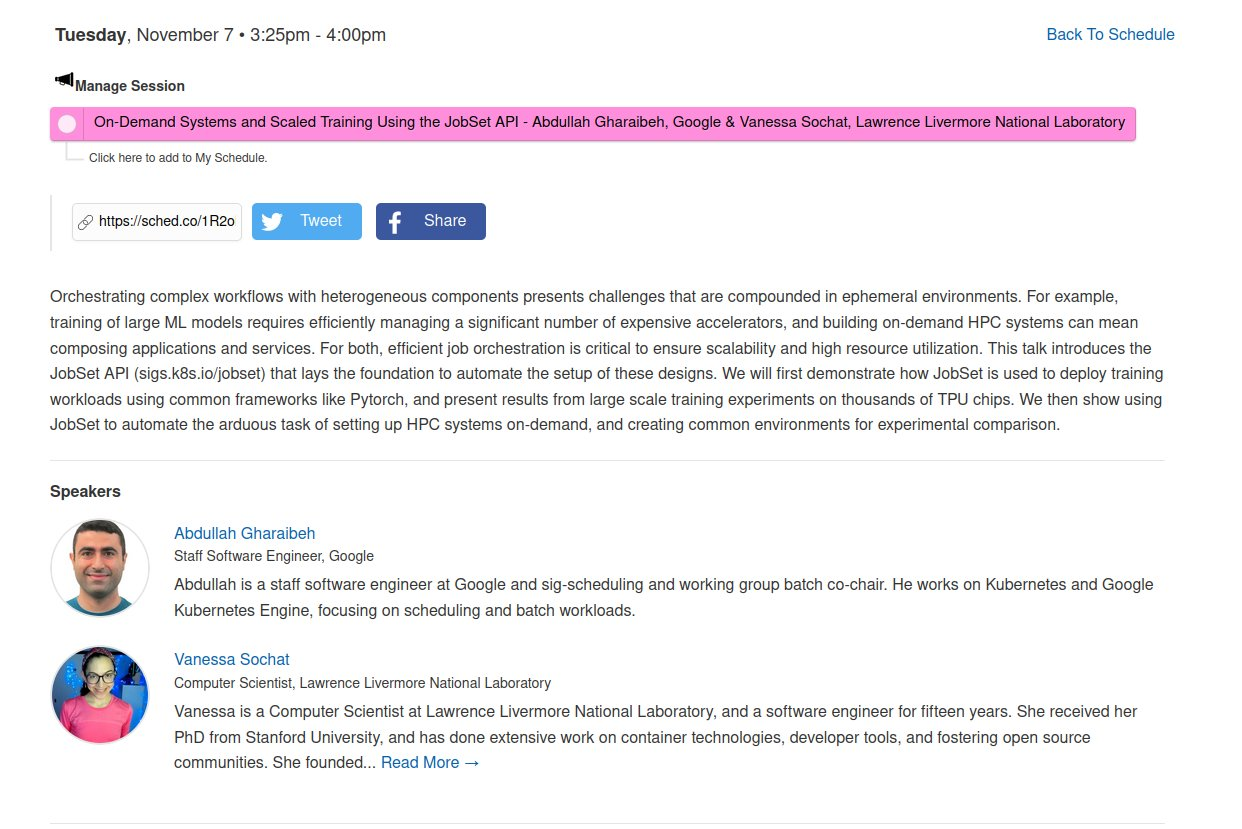 Come learn about the #JobSet API for running complex workflows/experiments for cloud and #HPC on #Kubernetes!