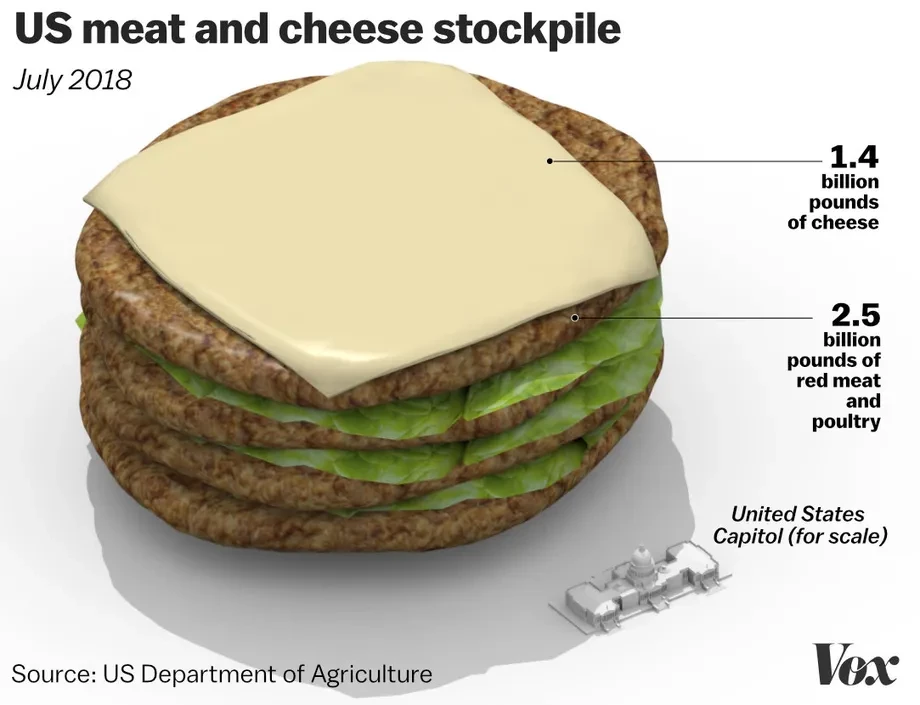 in reply to Sheril Kirshenbaum • • •The US has 2.5 billion pounds of red and poultry meat in pre-sale price maintanance storage. This article images the size of the storage.