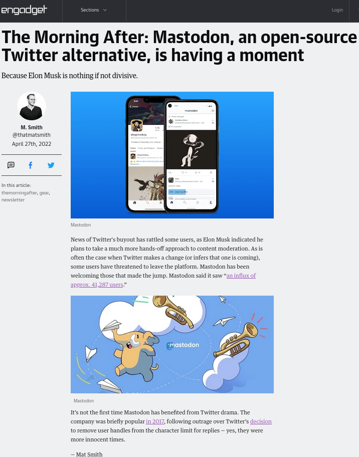 The Morning After: Mastodon, an open-source Twitter alternative, is having a moment