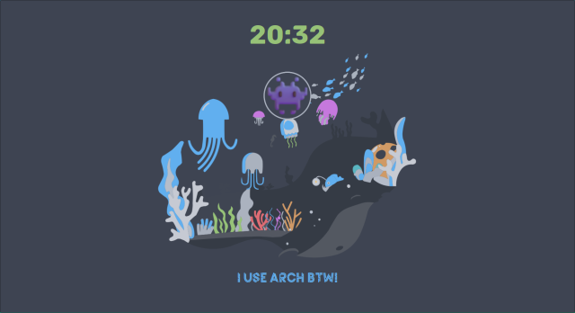 Here's a screenshot of my desktop. I wanted a non-distracting background, so I created one with mostly a solid color, but also with a long line (based on a Hilbert space-filling curve) just in case a window had the same color as the background. A program created the images (multiple versions for different colors) and the images are installed using a Debian package.