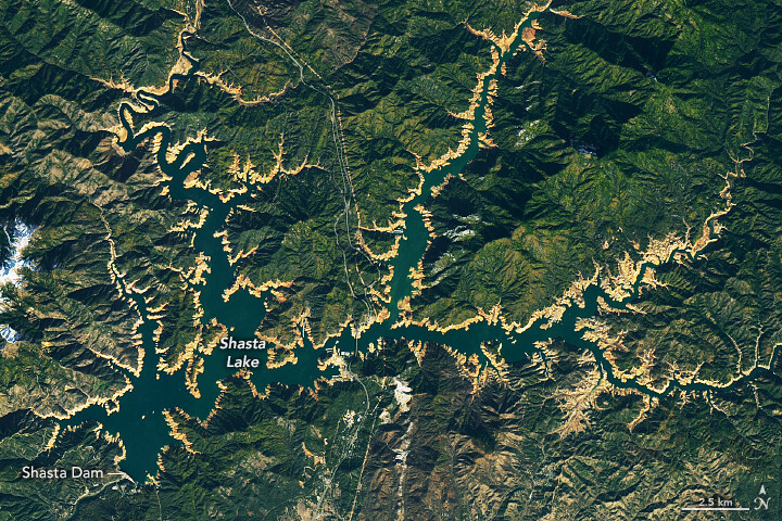 These #Landsat images show how the rain replenished the two largest reservoirs in California: Shasta Lake and Lake Oroville.