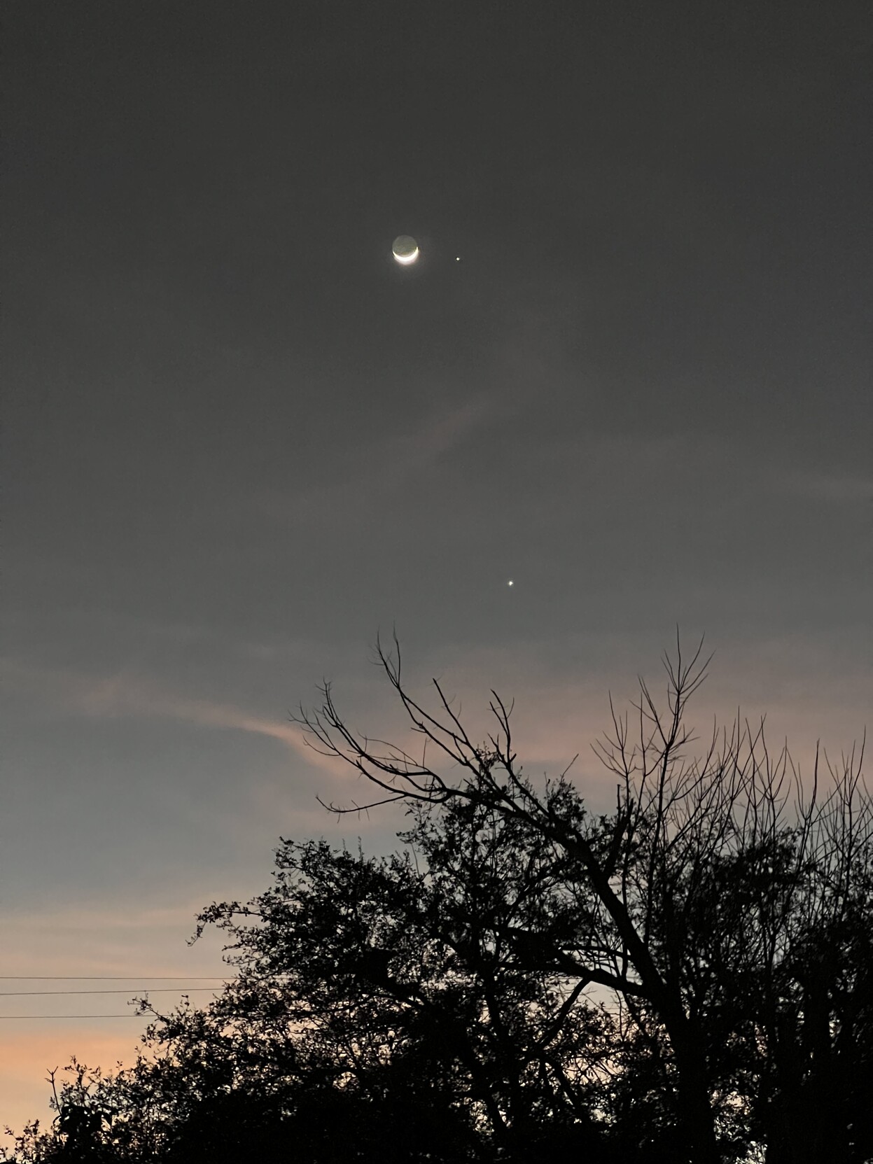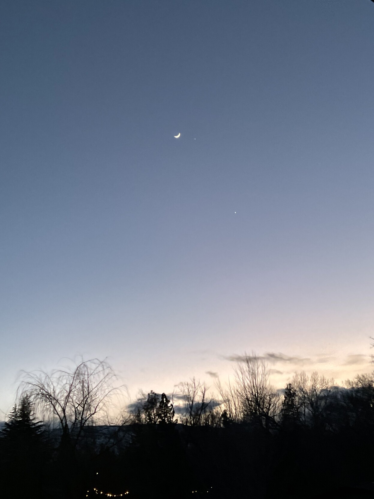 There’s a meetup happening in the western sky: the crescent Moon sits close to Jupiter, with Venus below them. Jupiter and Venus will continue to cozy up until March 1, when they’ll be at their closest.