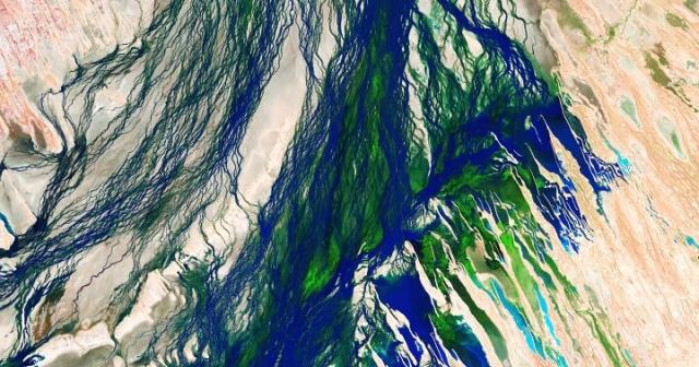Did you guess it? It’s the Diamantina River in Australia! Although dry for most of the year, seasonal rainfall sends water coursing through its channels. In this enhanced-color image captured by #Landsat 8, water and saturated soil are shades of blue.
