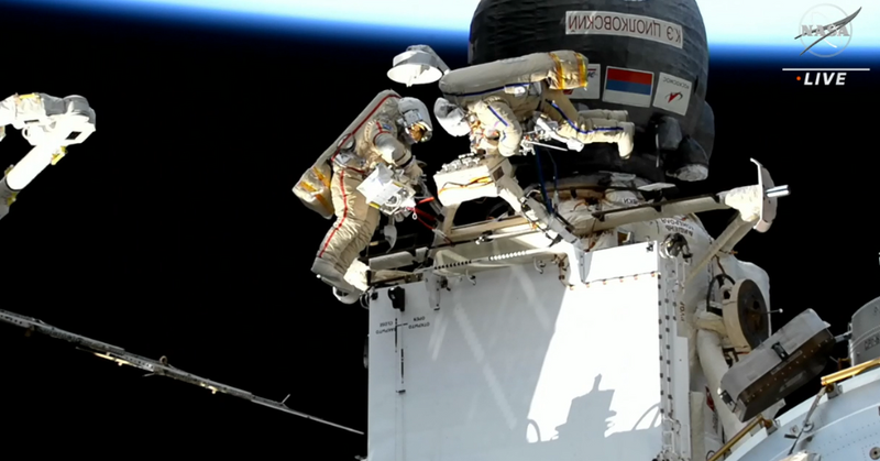 Roscosmos cosmonauts Sergey Prokopyev and Dmitri Petelin began a spacewalk at 9:40 p.m. EDT to relocate a radiator from the Rassvet module to the Nauka science module with assistance from European robotic arm operator cosmonaut Andrey Fedyaev.blogs.nasa.gov