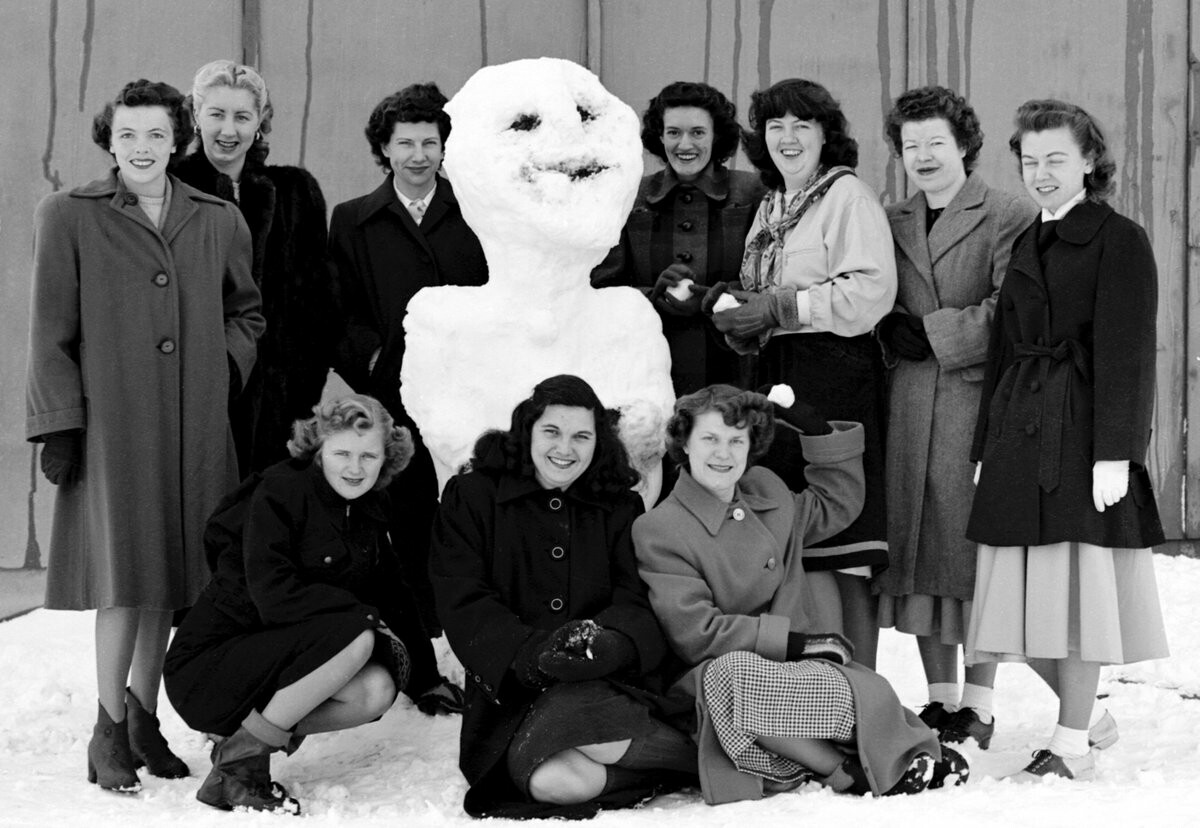 These women computers at the Muroc Flight Test Unit (now @NASAArmstrong) took advantage of a rare snowy day in California #OTD in 1949. ☃️ Their work: doing laborious calculations from long strips of data recorded by onboard aircraft instruments. @WomenNASA #AviationHistoryMonth #NASAhistory