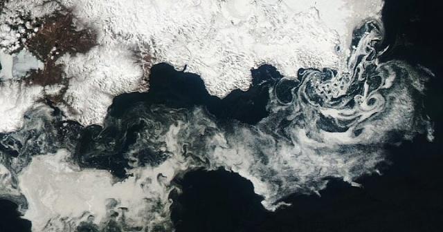 Ice breaking up off the Russian coast whirled at the whims of winds and currents.go.nasa.gov