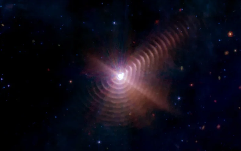 A new image shows at least 17 dust rings created by a rare type of star and its companion locked in a celestial dance.Tony Greicius (NASA)