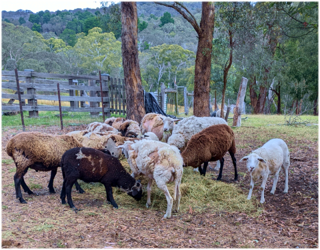 Goats--lots of cute goats!The people who care for these goats are only a block and a half away. They aren't always close enough to photograph, but they are friendly. They just have more important things to do like eating from a bale of hay!