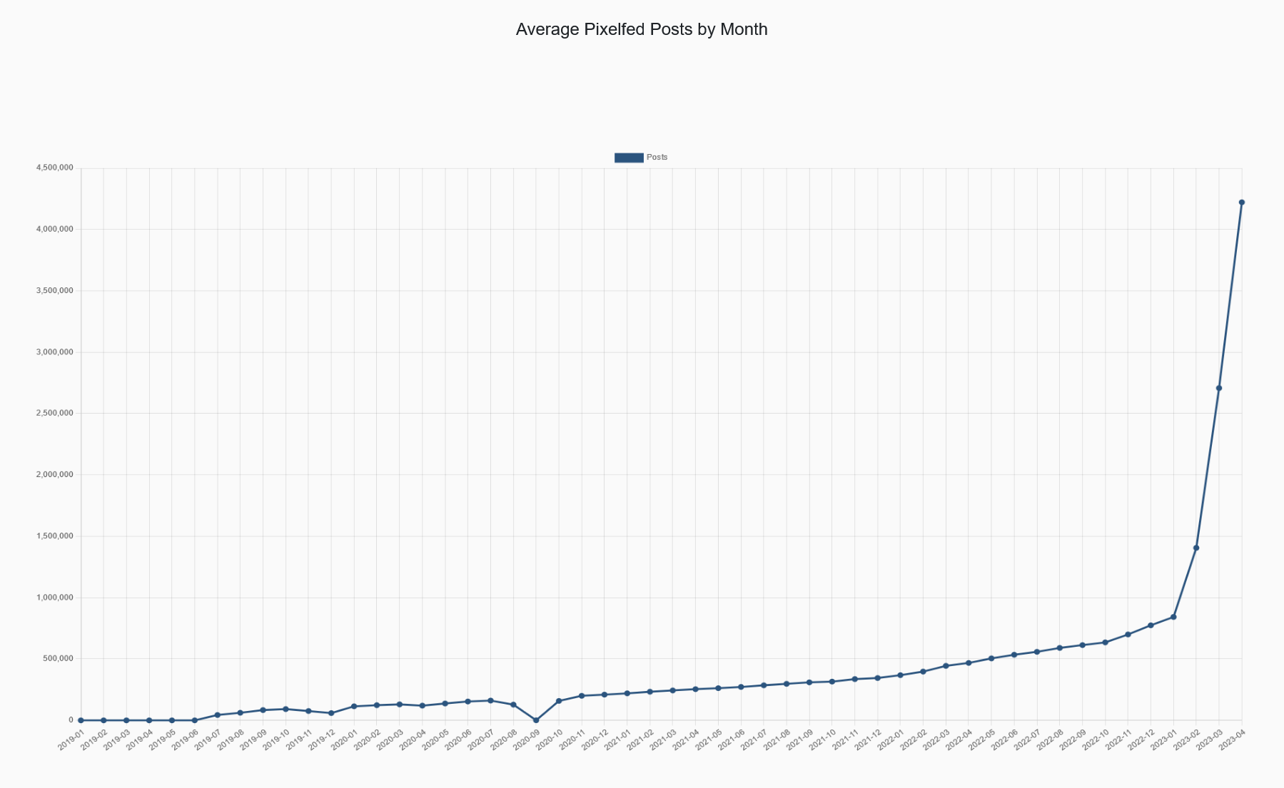 Here's the Average Pixelfed Posts by Month.