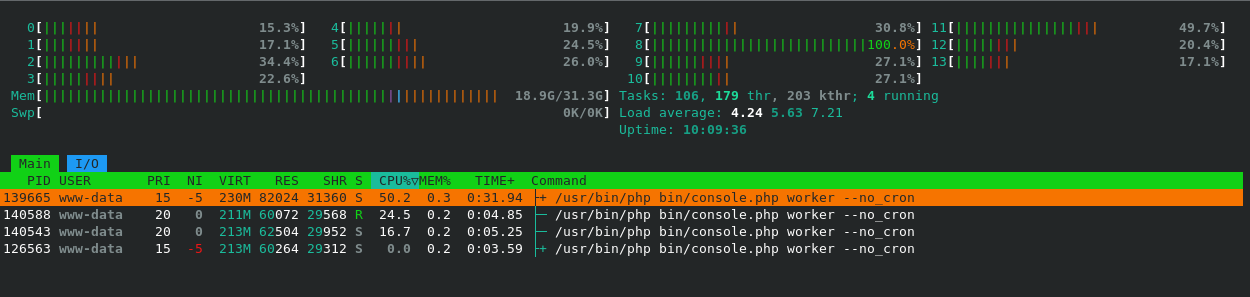 in reply to Tuxi ⁂ • • •renice 19 `pidof php`nach Start des Workers aus. Dadurch nimmt der Prozess nur Leerlaufzeit ein und belastet das System nicht weiter.reshared this