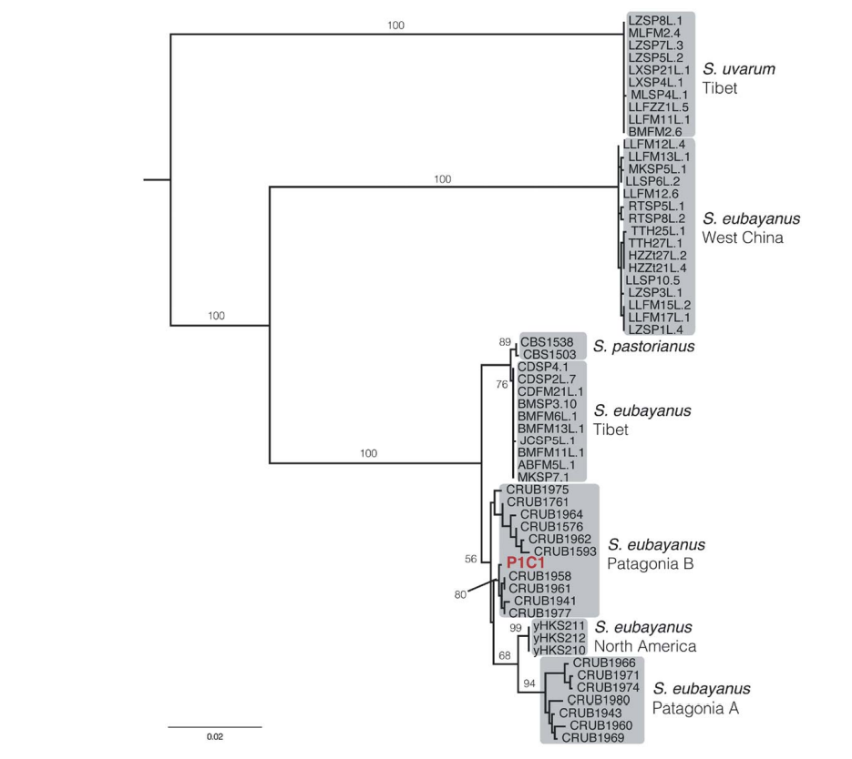 Over the last decade, the puzzle of where this wild yeast comes from is being solved. It was found that Saccharomyces eubayanus is the source of the genetic material that sets S. pastorianus apart from S. cerevisiae. This yeast has since been isolated from Argentinia, Tibet, West China and New Zealand and likely created the S. pastorianus hybrid over 1000 years ago in East Asia. 6/7