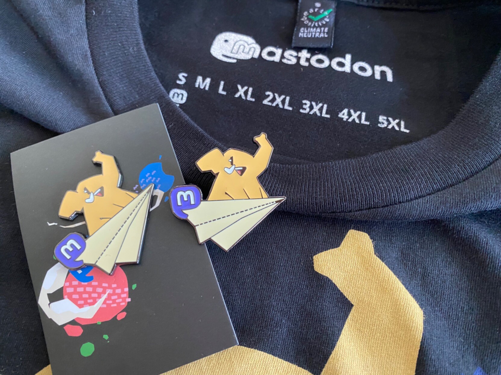 Tshirt - the colors on T-shirts do not seem as brilliant as the ones on those pins, other than that everything is great, the smallest size can fit petite females with the tshirt tucked in. The sizing with mastodon logo is sooooo damn cute!!