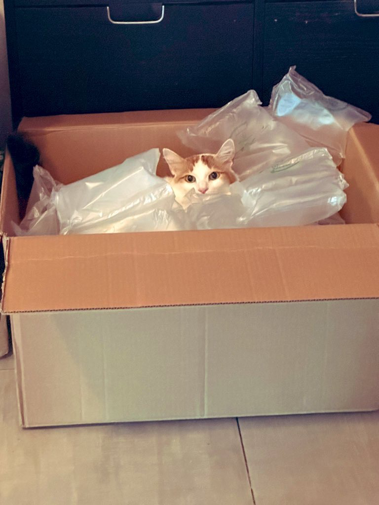 Received a very important #gamedev package today. My QA assistant is checking everything out. #catsofmastodon