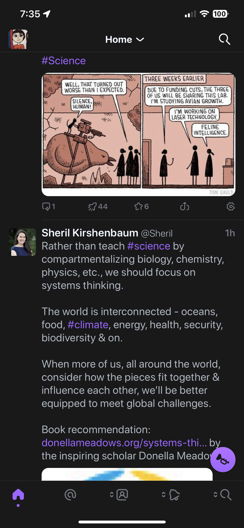 in reply to Sheril Kirshenbaum • • •Some of us divergent types can't help but think systemically. I have presented to several groups of engineers about building innovative teams. I recommend doing deep research in a very different field, like biology (as opposed to computer science for example), when searching for inspiration. I have several good examples and love the idea of transdisciplinary thought. You have my vote.