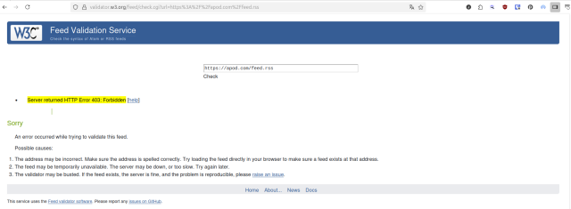 in reply to pasjrwoctx👽 • • •What happens, when YOU check the url on validator.w3.org/feed/ ???