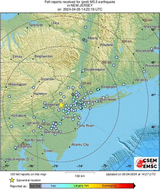#Earthquake (#sismo) confirmed by seismic data.⚠Preliminary info: M5.5 || 19 mi W of North Plainfield (New Jersey) || 4 min ago (local time 10:23:19). Follow the thread for the updates👇