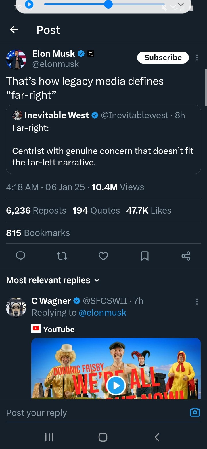 in reply to Eugen Rochko • • •“Banned for saying good things about Musk and Trump”