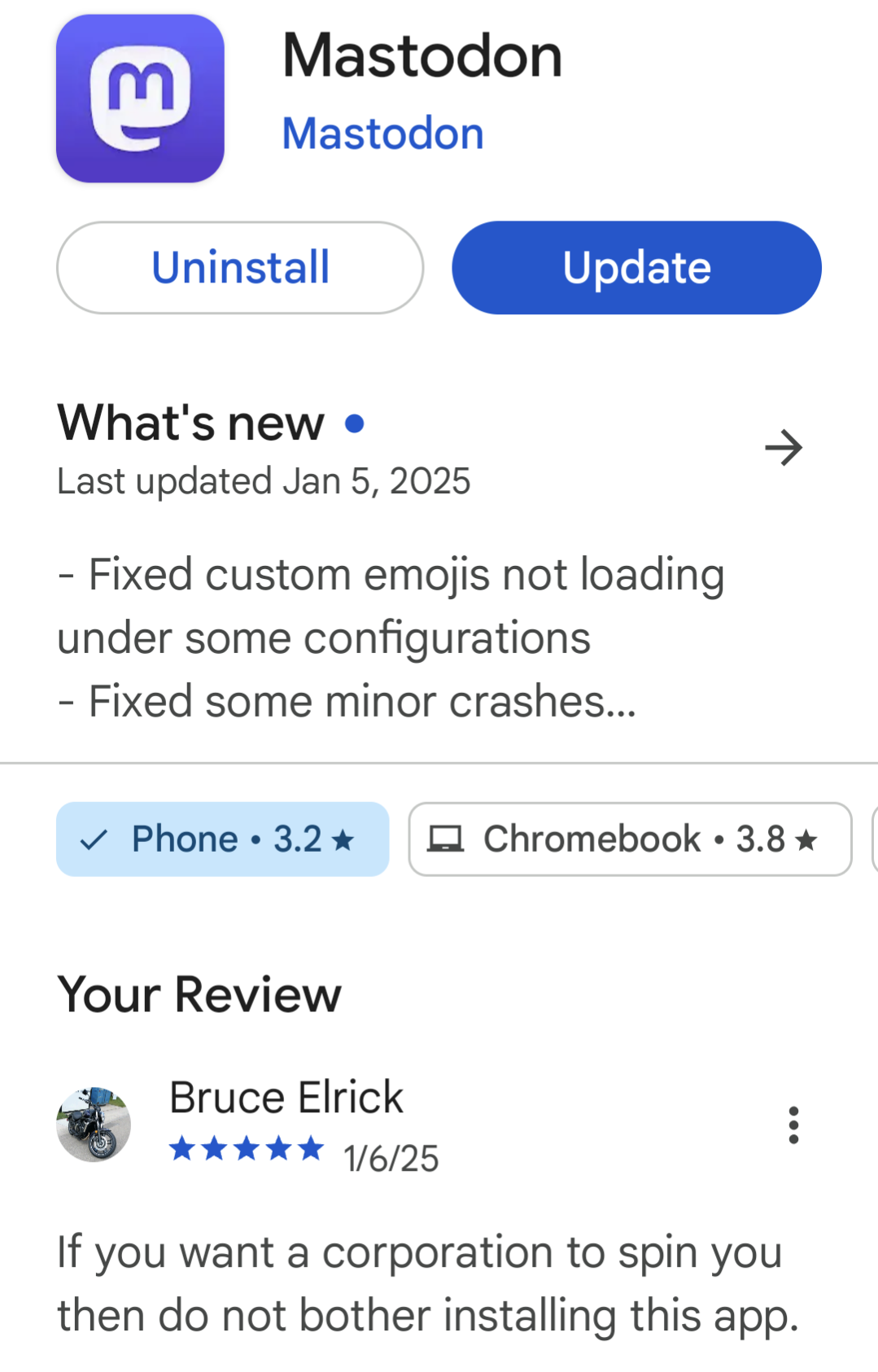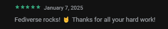 Thanks for the reminder. Just left a four star review. Will bump up to five star when Mastodon finally releases the support for quote posts. This year, right? 😃