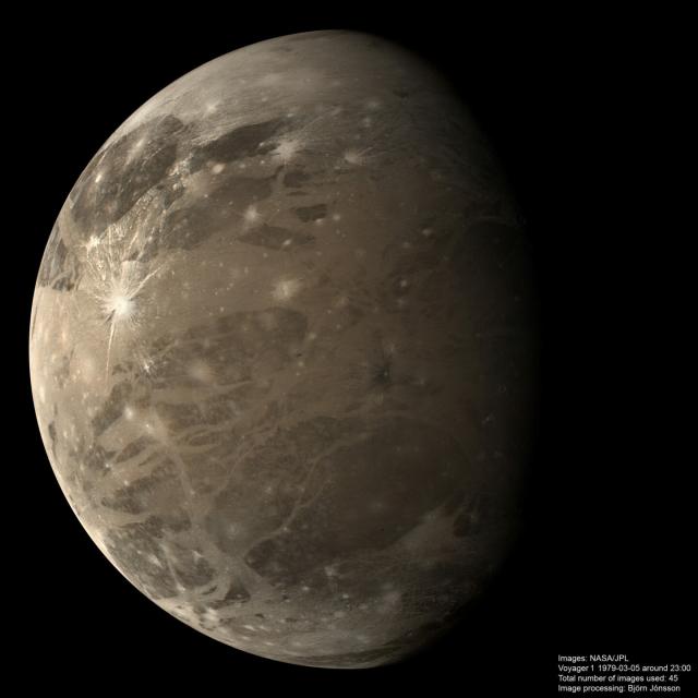 On this day in 1979, the Voyager 1 spacecraft snapped a series of images of Ganymede, the largest moon in our solar system, as it made its closest approach to Jupiter