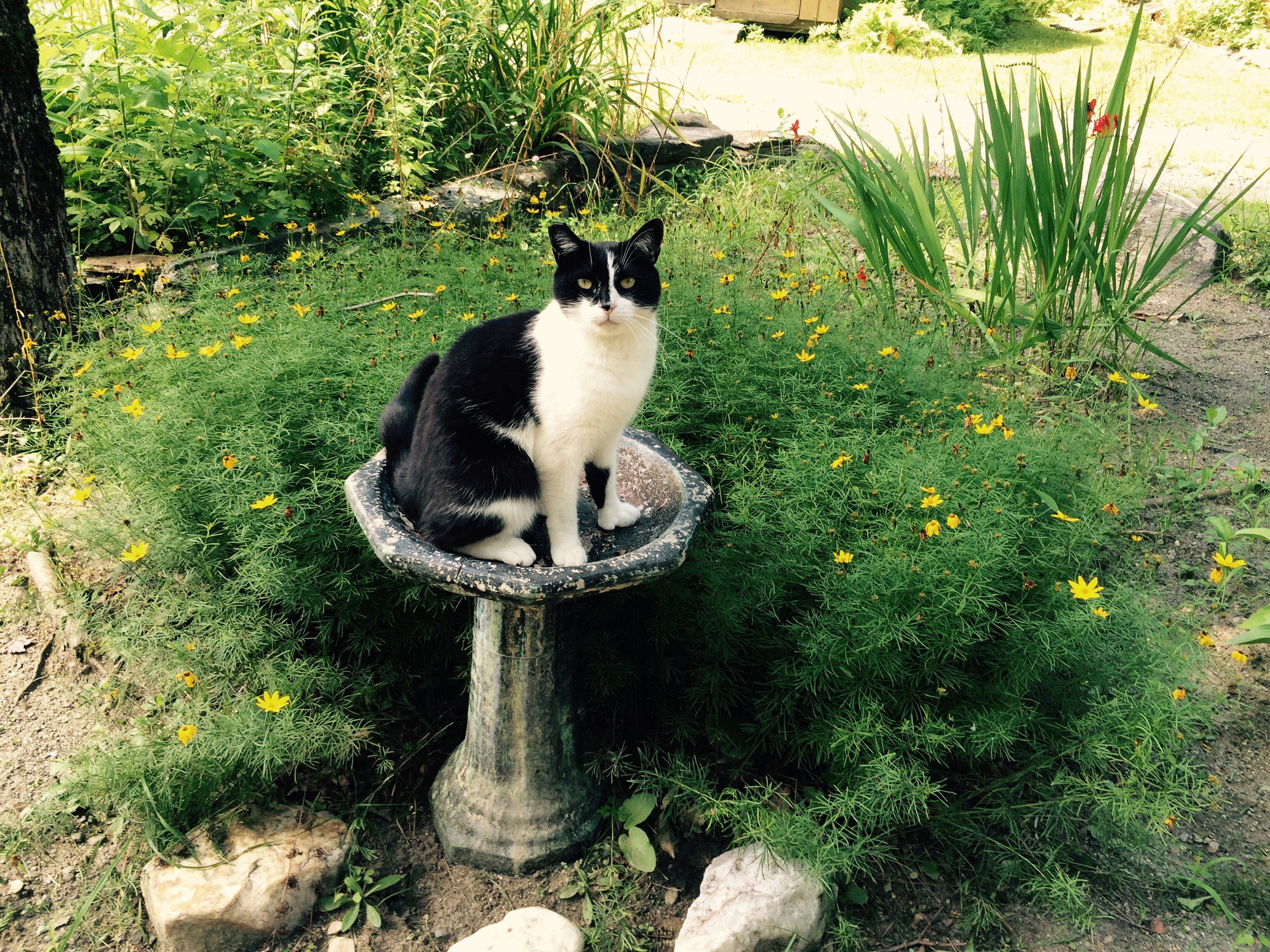 Moss or no moss, the cats love this roof. The garage, an old barn, is built into a hill so the lowest part of that side is only about 60cm off the ground ie, a perfect height for being tickled when a human is walking along the adjacent footpath.