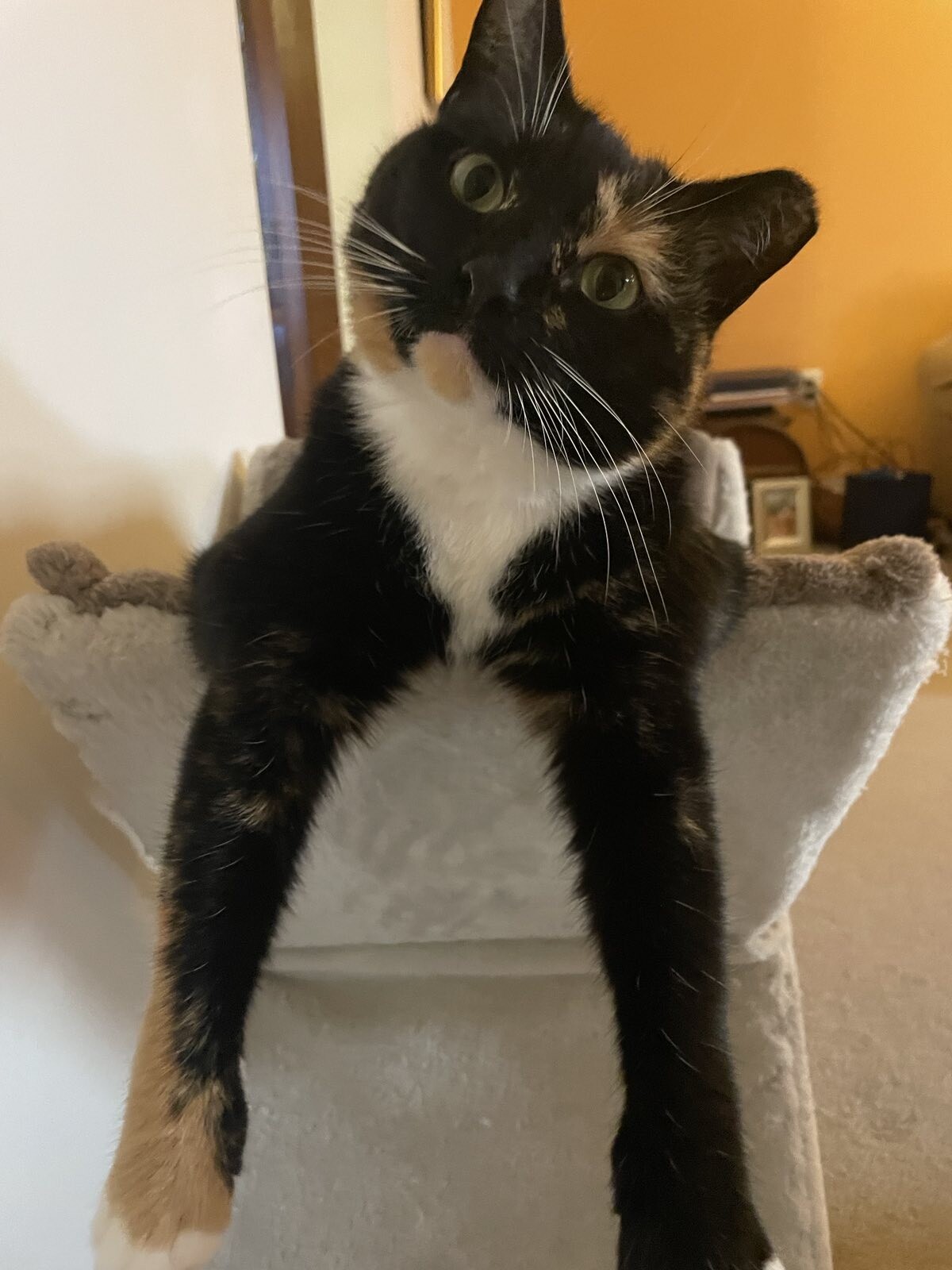 “Hang on, I have to toothbrush the cat.”