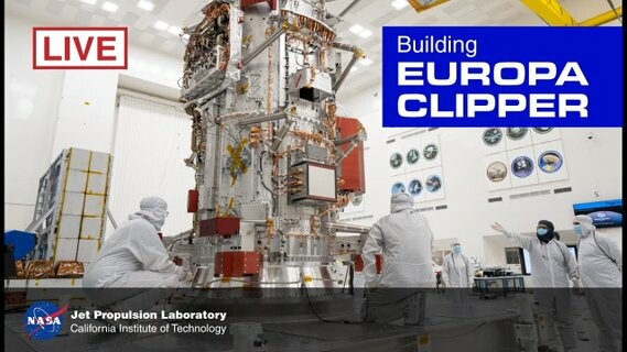 Watch live as teams work on @EuropaClipper, set to launch Oct. 2024 to see if Jupiter's icy moon Europa has the right conditions for life. Today, two sections of the spacecraft are being joined.