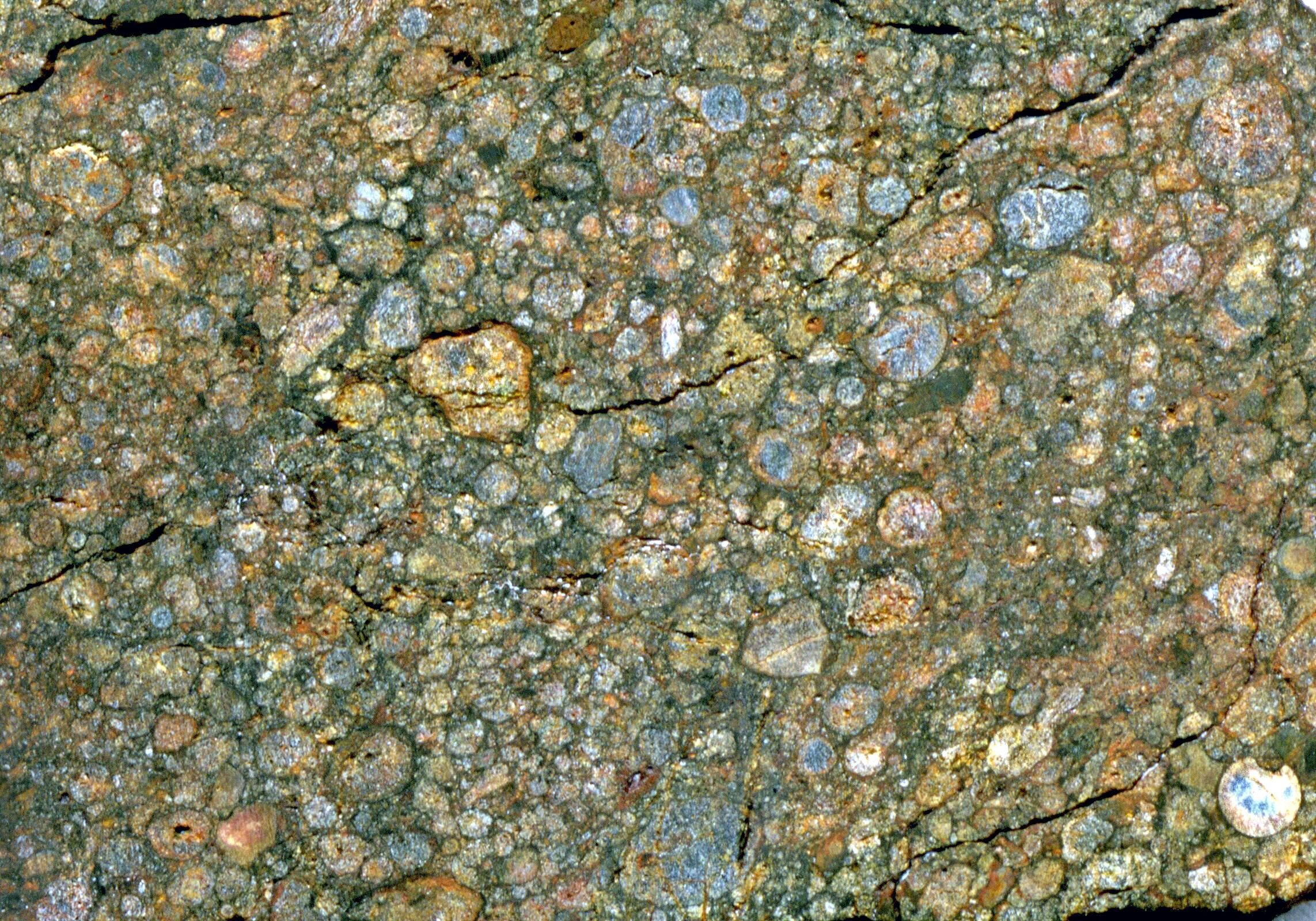 Ordinary chondrite - North West Africa 3189 Meteorite. (cut slice; field of view ~2.2 centimeters across) Chondrites are the most common type of meteorites that fall to Earth.Flickr