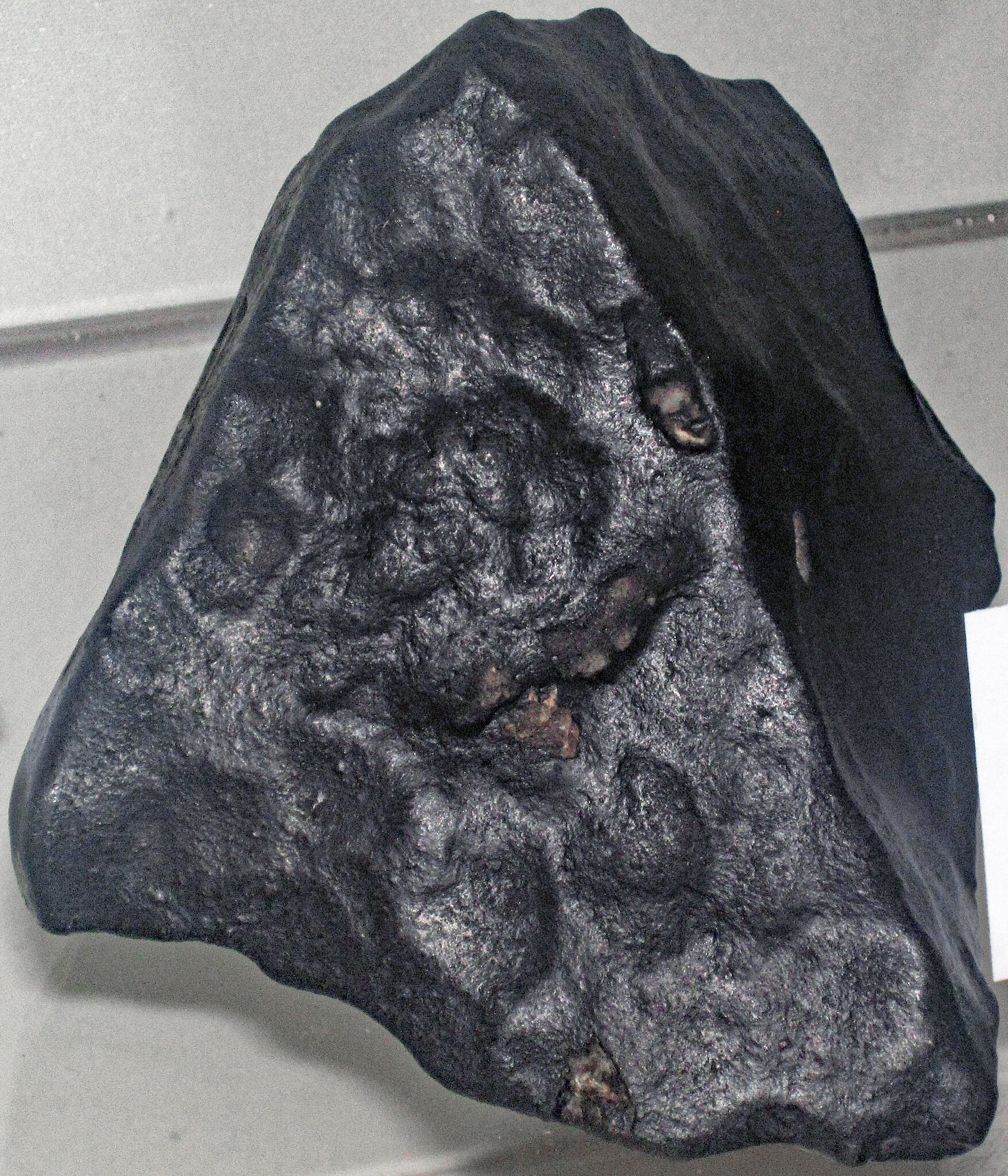 New Concord Meteorite - fusion crusted individual (OSU public display, Orton Geology Museum, Ohio State University, Columbus, Ohio, USA). Chondrites are the most common type of meteorites that fall to Earth.Flickr