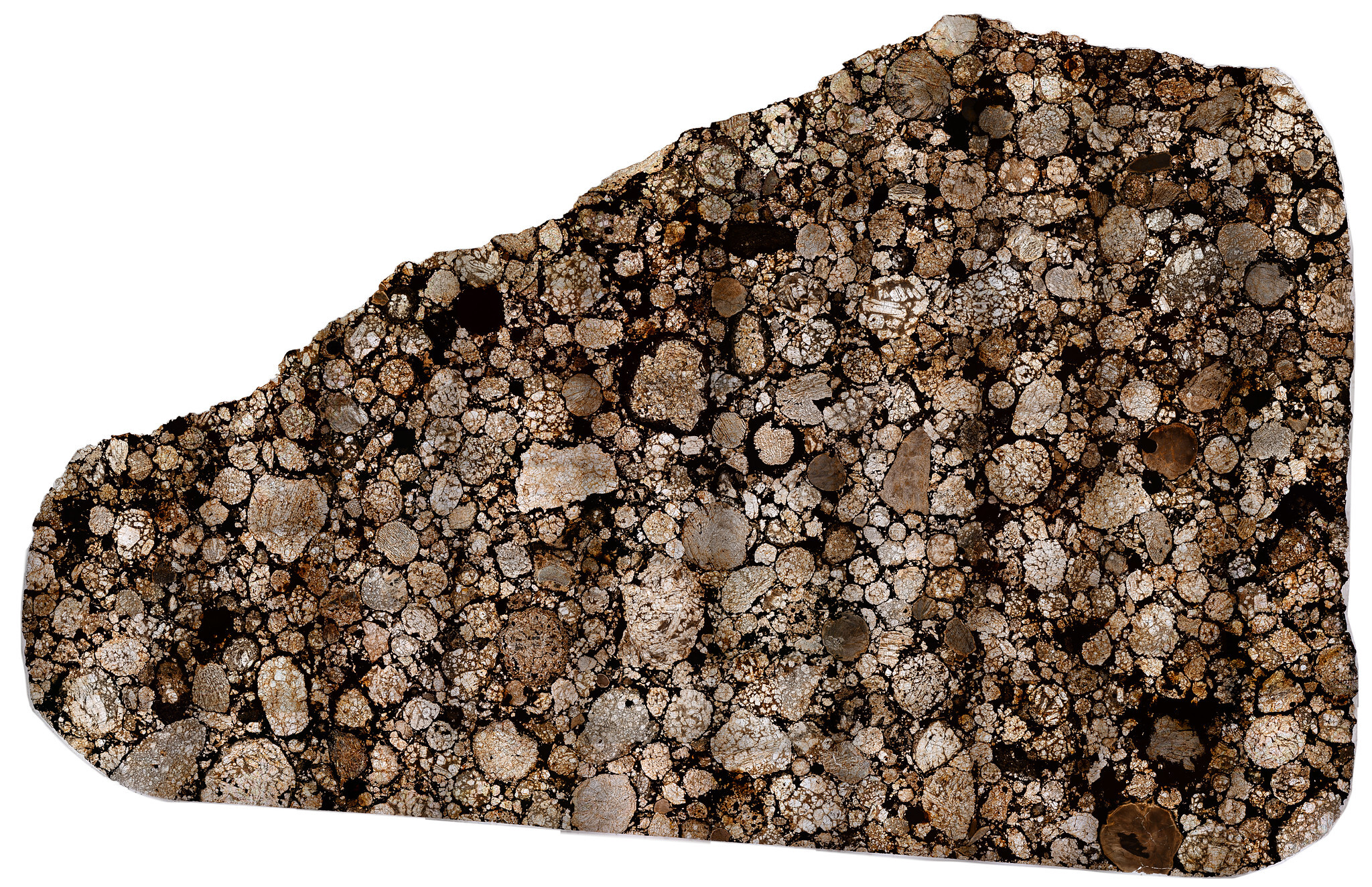 A slice of the Allende Meteorite, observed to fall on February 8, 1969 in Chihuahua, Mexico.