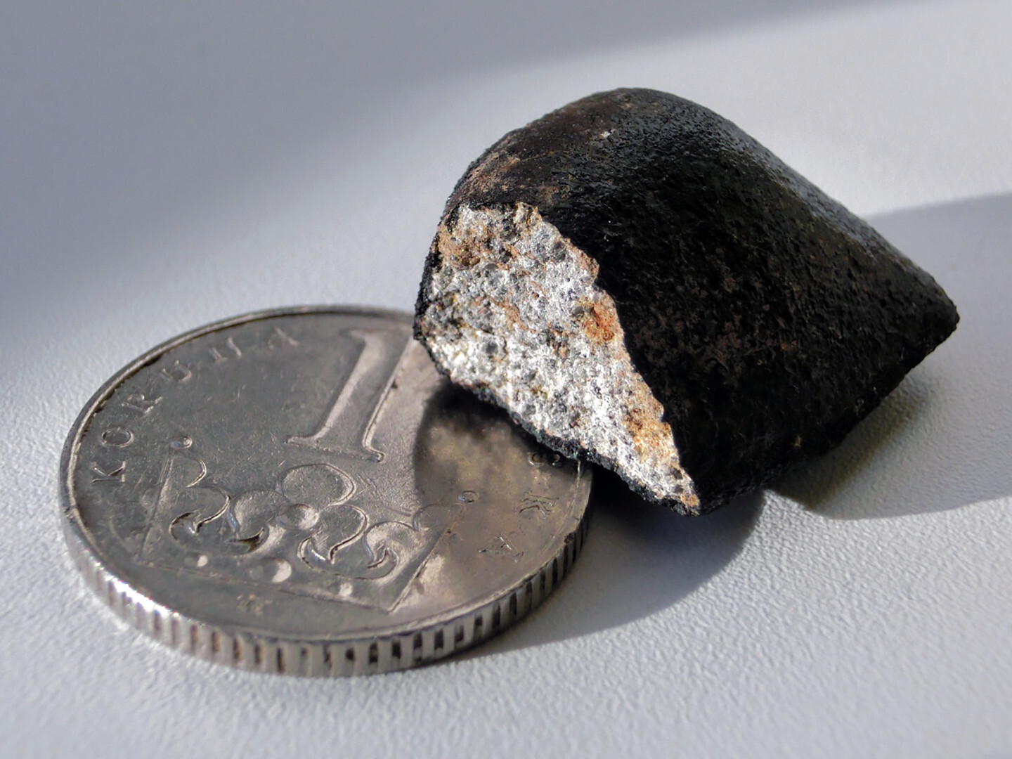 "The meteorite Zdar nad Sazavou seen as a fireball mass of 6 grams. It fell in the Czech Republic on December 9, 2014 and was found after the fall location was predicted from fireball images."