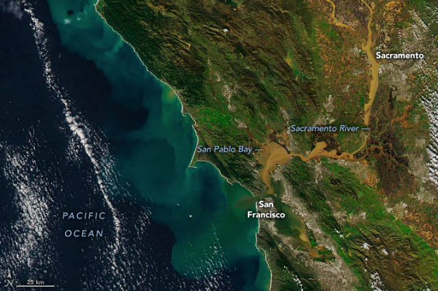Following a siege of atmospheric rivers, sediment billowed into the Pacific Ocean along the California coastline.go.nasa.gov