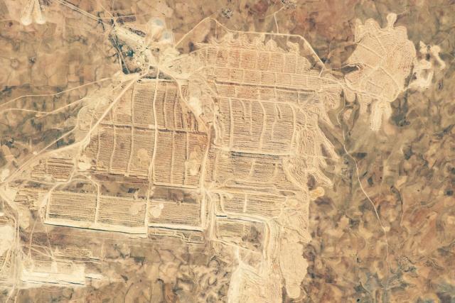 The conveyor belt helps transport an essential agricultural fertilizer from the remote reaches of Western Sahara to farmlands across the world.go.nasa.gov