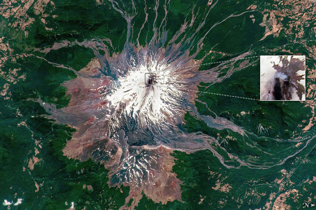 This image made from #Landsat 8 data shows a satellite view of the volcano from Jan. 11 overlaid with the infrared signature (in red) from the lava’s heat.