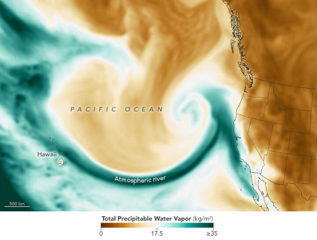 The latest in a series of atmospheric rivers drenching the state was accompanied by hazardous winds and left thousands of people without power.go.nasa.gov
