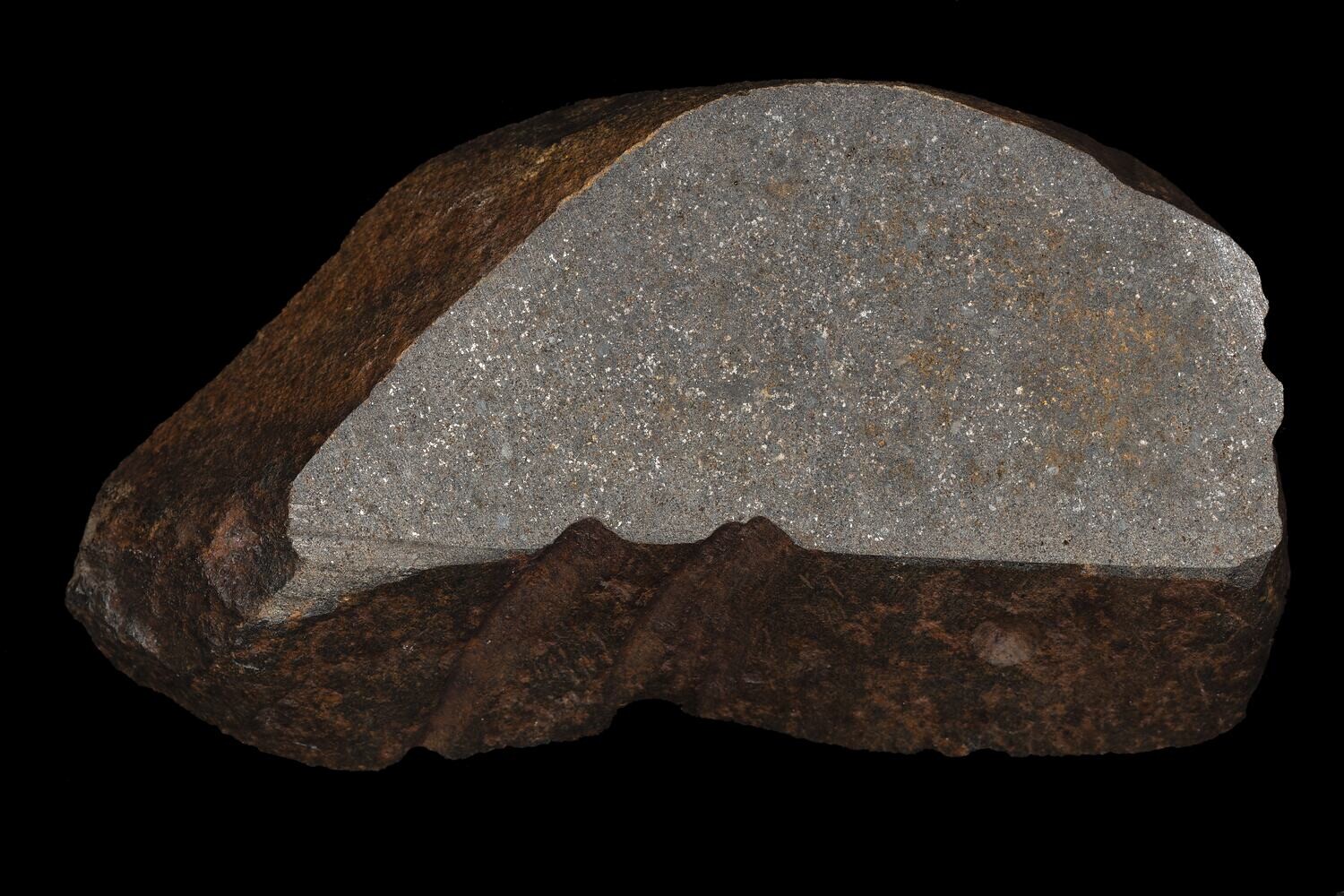 A slice of the Faith Meteorite that was found in 1952 in South Dakota, USA.