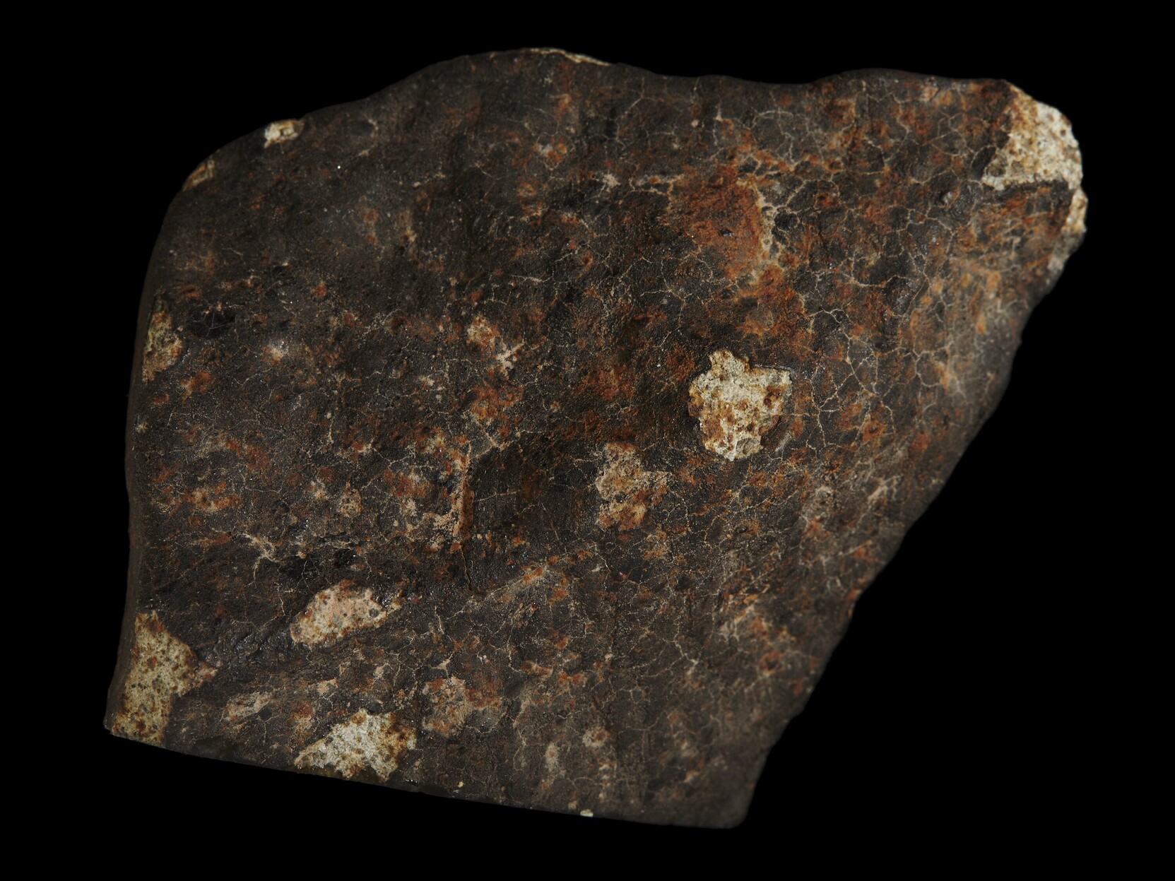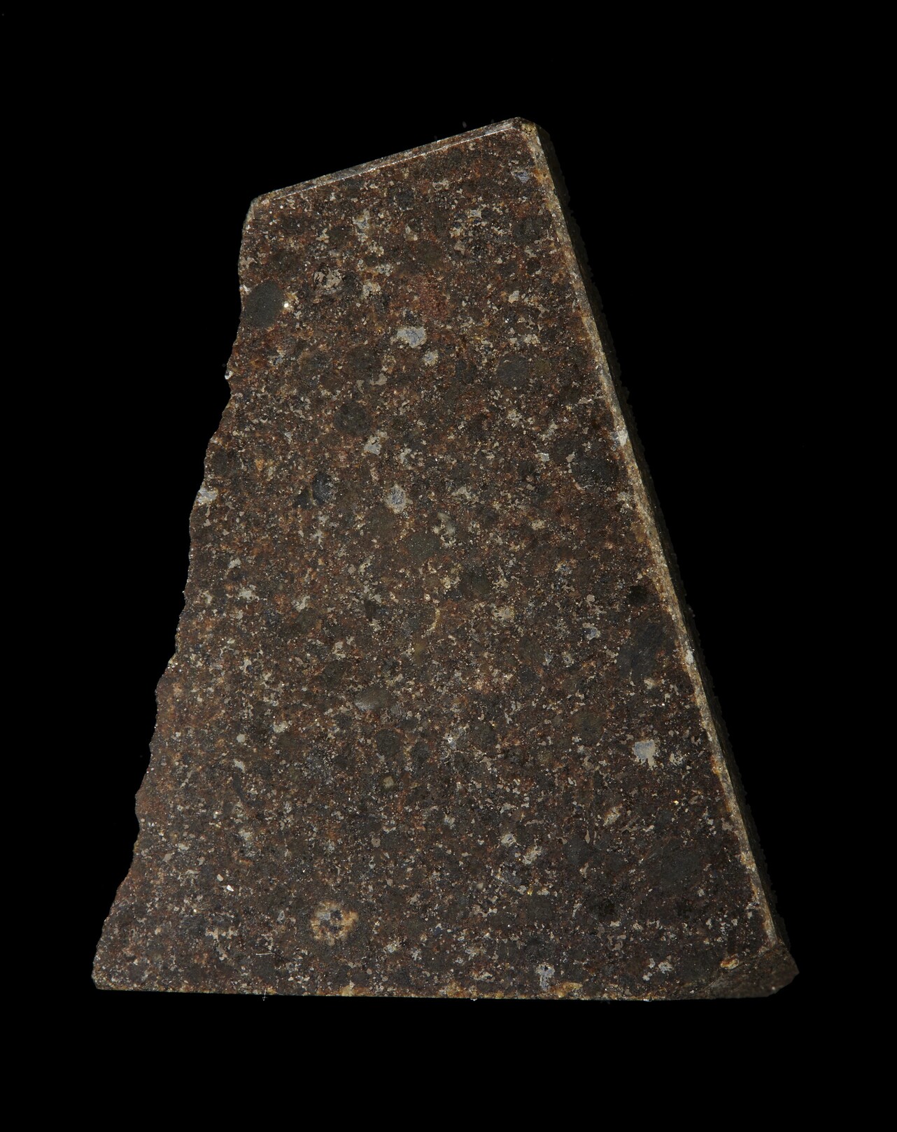 A slice of the Allende Meteorite, observed to fall on February 8, 1969 in Chihuahua, Mexico.