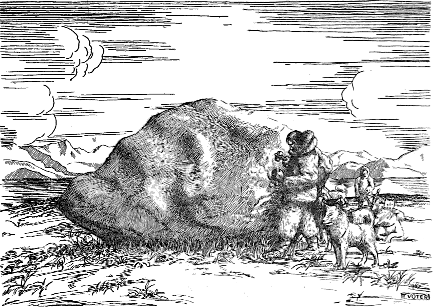It presumably shows the "Saviksue" or Cape York Meteorite, used by locals for centuries, shown to Peary in 1894. The main mass was renamed Ahnighito by Peary (it was also called the "Tent"). Other pieces include the Woman and the Dog.