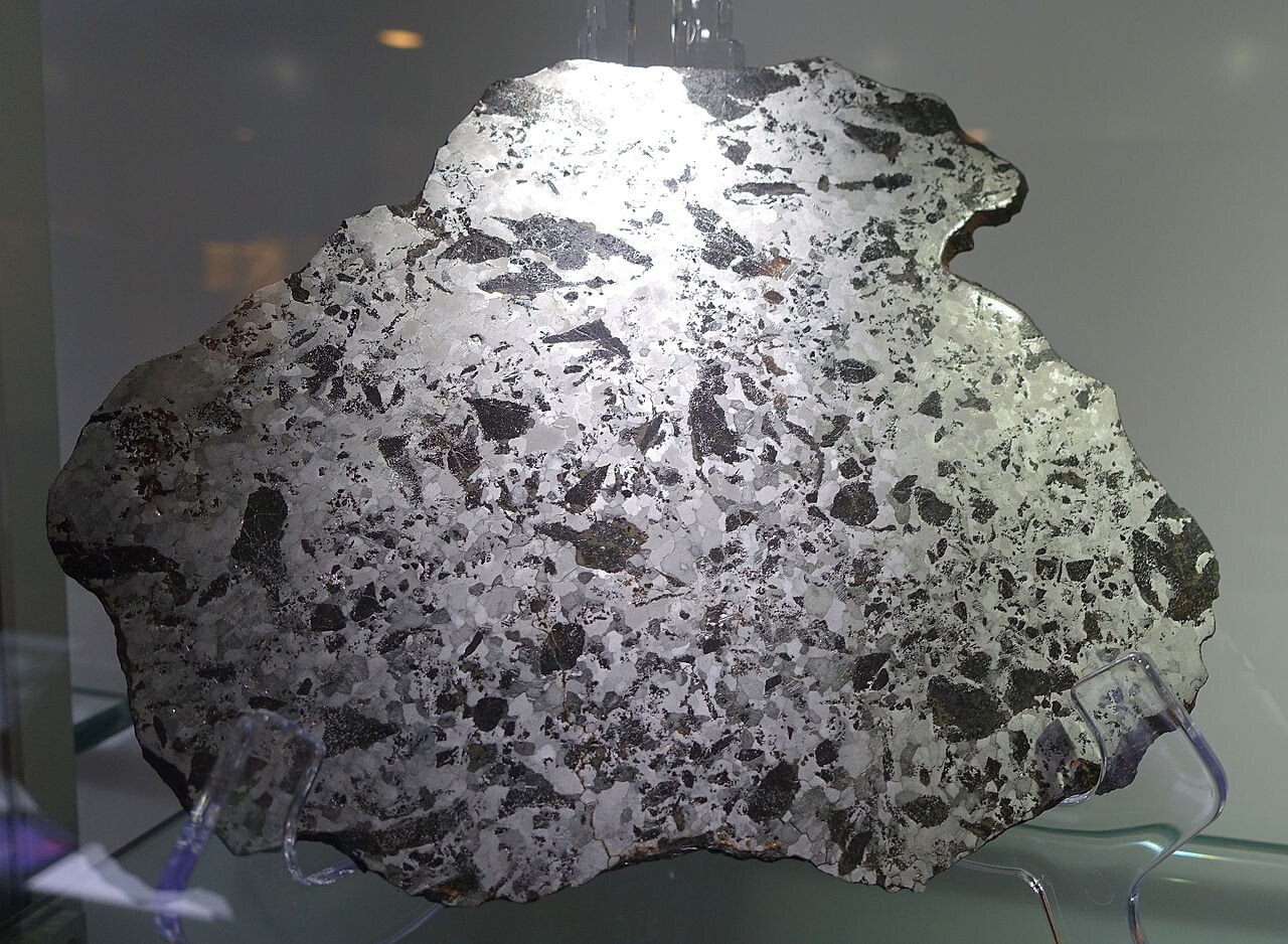 A slice of the New Concord Meteorite; from Ohio, USA. At the Cincinnati Museum of Natural History and Science, Cincinnati, Ohio, USA.