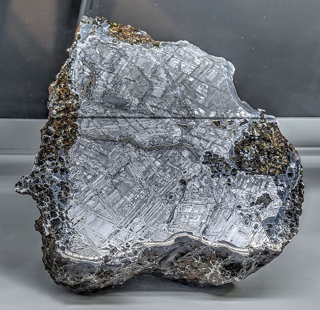 A slice of the Seymchan Meteorite that was found in Russia in 1967.