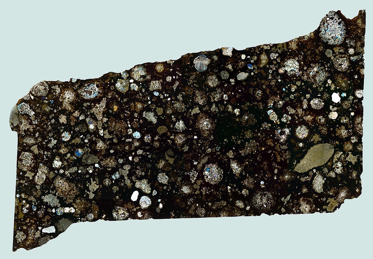 NWA 2224 Thin Section Gigapixel mosaic of a CV3 carbonaceous chondrite; low degree polarized light filter; Nikon D810.