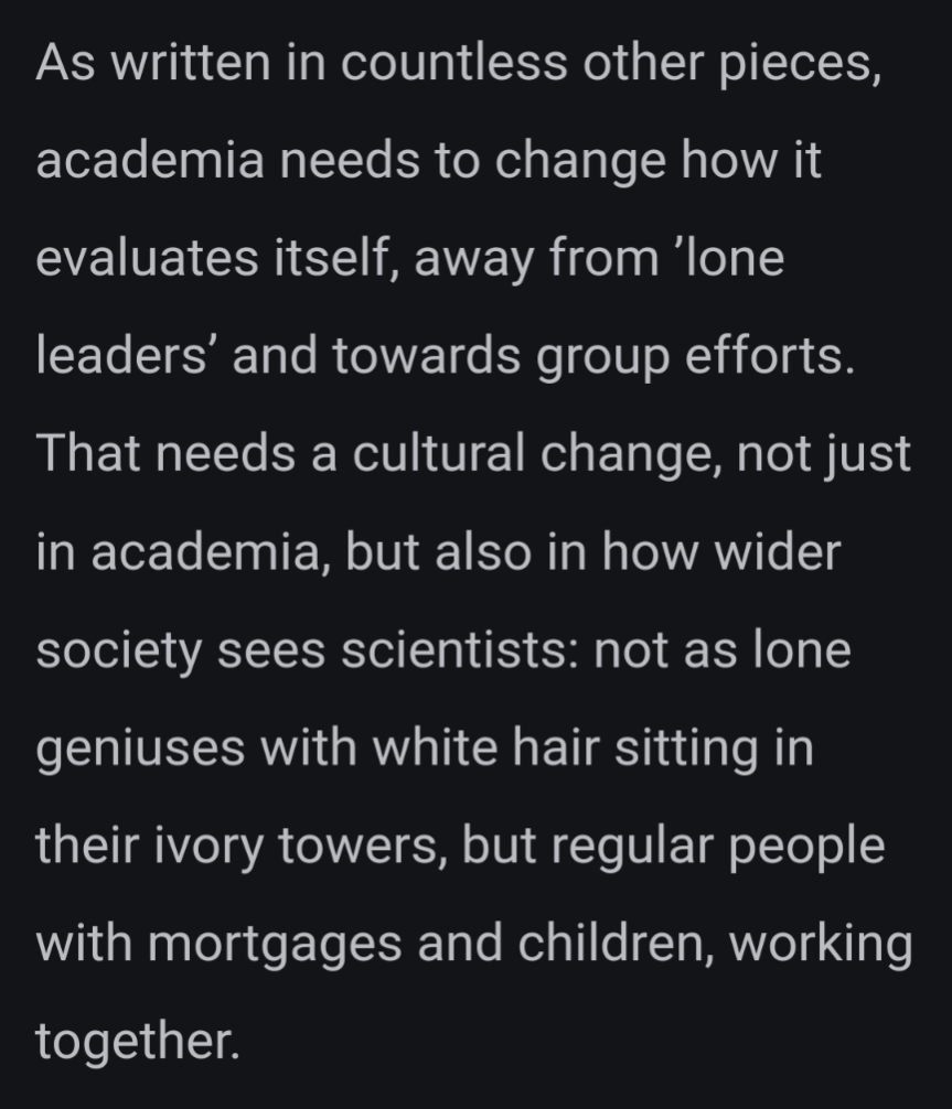 My highlight in this screenshot (#science delivery & success is a TEAM effort!), but if you're vaguely involved in #academia +/- #bioinformatics, do have a read and think how it all may apply to you. #academicchatter @academicchatter