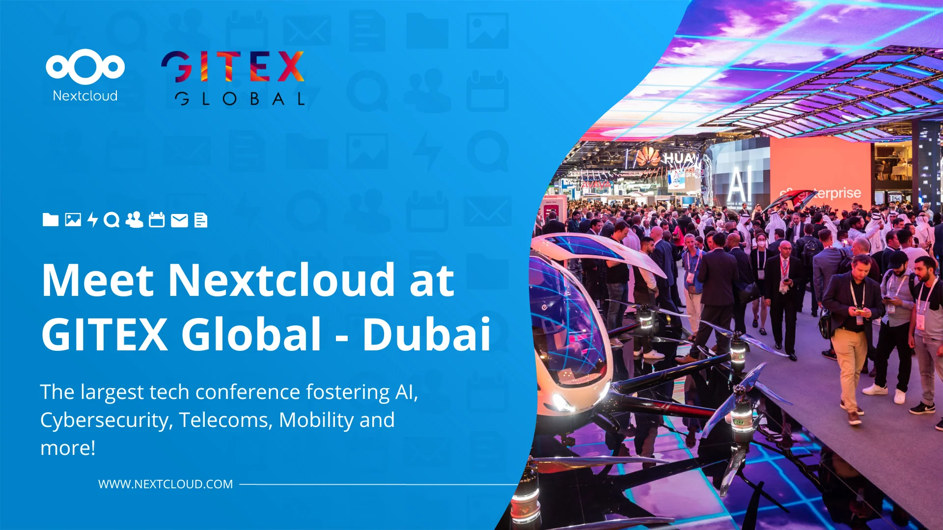 Join us at Gitex Global in Dubai, the world's largest technology trade show, from October 16 to 20. You'll have the opportunity to meet our team and find new solutions and partnerships for your organization.Nextcloud